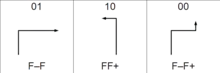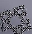 • From the Fibonacci word, one can define the « dense Fibonacci word», on an alphabet of 3 letters : 102210221102110211022102211021102110221022102211021... ((sequence A143667 in the OEIS)). The usage, on this word, of a more simple drawing rule, defines an infinite set of variants of the curve, among which :