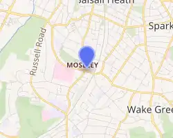 The earlier public house was demolished when King Edward Road was formed off Alcester Road. This building was erected in 1903 to the designs of the architects Thomas Walter Francis Newton and Alfred Edward Cheatle.[3] It was built in the Arts and Crafts style.