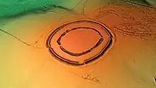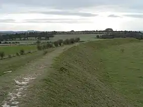 Small portions of the site were excavated in 1924 by Ben and Maud Cunnington as it was their belief that the site was the remains of an Iron Age Hill fort. Superficially this description of an earthwork with exterior ditch would seem appropriate, however the presence of an enigmatic inner ditch has led many archaeologists to doubt this interpretation. This ditch is separated from the outer rampart by a berm of up to 30 metres in width and, to many, it seems likely that the site actually began as a late neolithic Henge.