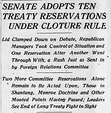 - Bomboy, Scott. "On this day, Wilson's own rule helps defeat the Versailles Treaty - National Constitution Center". National Constitution Center – constitutioncenter.org. Retrieved May 15, 2019.