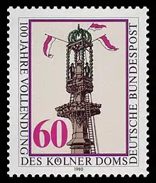On 11 October 1991, the Cologne Tourist Office had a newly created model of the finial erected in front of the cathedral.[5] The concrete model of the southern finial on a scale of 1:1 was placed 50 metres in front of the west façade of the cathedral between the street Unter Fettenhennen and the Domplatte. The faithful sculpture demonstrates the dimension and details of its prototype.