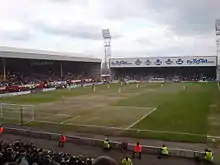 The stadium has an unbalanced look about it, with one large stand contrasting with three smaller structures, one of which does not extend the full length of the pitch. It has been an all-seater stadium since the 1990s, with a capacity of 13,677.[1]