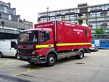 The vehicle carries equipment to support normal fire appliances and crews, typically at prolonged or major incidents.