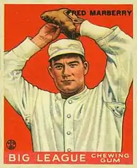 Frederick "Firpo" Marberry (November 30, 1898 – June 30, 1976) was an American right-handed starting and relief pitcher in Major League Baseball from 1923 to 1936, most notably with the Washington Senators. The sport's first prominent reliever,[1] he has been retroactively credited as having been the first pitcher to record 20 saves in a season, the first to make 50 relief appearances in a season or 300 in a career, and the only pitcher to lead the major leagues in saves six times. Since relief pitching was still seen as a lesser calling in a time when starters were only removed when clearly ineffective, Marberry also started 187 games in his career, posting a 94–52 record as a starter for a .644 winning percentage. He pitched in later years for the Detroit Tigers (1933–1935) and New York Giants (1936) before ending his career in Washington.