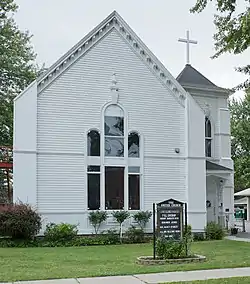 First Presbyterian Society of Cape Vincent, also known as the United Church of Cape Vincent, is a historic Presbyterian church located at Cape Vincent, Jefferson County, New York. It consists of a main block (1832), wood-framed narthex and tower (1884), and meeting hall (1959). The main block is a 1+1⁄2-story, Federal style limestone structure. The 2+1⁄2-story narthex has Gothic Revival style design elements. The main block was extensively rehabilitated in 1882, 1892, and 1914.[2]: 5, 7