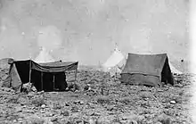 After a second night's march in the cold and wet conditions moving over both bog and rock, the Anzac Mounted Division concentrated at Ain es Sir on the early morning of 26 March 6 miles (9.7 km) west of Amman.[31] The weather was atrocious; sleet and heavy rain continued for almost the entire operation making the roads and tracks soft and boggy and all supplies of rations and forage had to be sent up to the advancing troops on camels and pack-horses.[61][87]