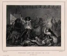 - 2 February 1795 – massacre of Jacobin prisoners at Lyons.[16] On 14 February Joseph Fernex, a judge on the former Revolutionary Committee, in prison since Thermidor, is killed and thrown into the Rhône by a mob.[17] On 1 March Another member of the Revolutionary Committee, Sautemouche, is killed.[18] Later in February Jacobin prisoners in Nimes are killed.[16]
