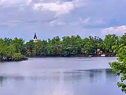 This process was initially slow, but it intensified from the late 14th century, when the Holy Roman Emperor Charles IV commanded the construction of fishponds "so that the kingdom would abound in fish and mist".[2] The ponds resulting from this were often constructed in the spirit of civic competition and were of significant value; a large, 260-hectare (640-acre) pond was considered as valuable as three villages, counting the land and inhabitants.[3] It further intensified during the 15th and 16th centuries when the fish trade was one of the most profitable farming activities in the area.[4]