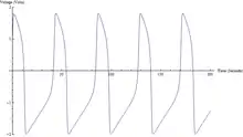 The FHN Model[1] is an example of a relaxation oscillator because, if the external stimulus exceeds a certain threshold value, the system will exhibit a characteristic excursion in phase space, before the variables and relax back to their rest values.