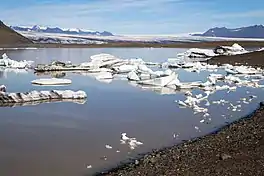 Fjallsárlón (Icelandic pronunciation: [ˈfjalsˌaurˌlouːn]) is a glacier lake at the south end of the Icelandic glacier Vatnajökull. Fjallsjökull which is part of the bigger glacier reaches down to the water of the lake and some ice-bergs are drifting by on its surface.
