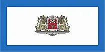 | Design | A horizontal bicolour of blue and white, with the coat of arms of Riga in the middle. |