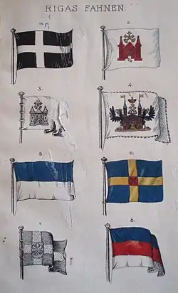 From the 1900s until 1917,[6] a new tricolor flag with equal blue, red and white bands was approved for Riga.[3]