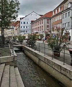 Flappach (in its lower course: Stadtbach) is a river of Baden-Württemberg, Germany. It flows into the Schussen in Ravensburg.