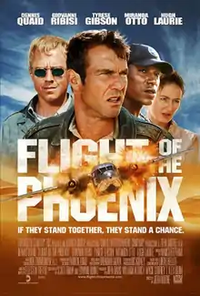 Flight of the Phoenix is a 2004 American survival drama film directed by John Moore and written by Scott Frank and Edward Burns. The film is a remake of the 1965 film of the same name, both based on the 1964 novel The Flight of the Phoenix, by Elleston Trevor, about a group of people who survive an aircraft crash in the Gobi Desert and must build a new aircraft out of the old one to escape. It stars Dennis Quaid, Giovanni Ribisi, Tyrese Gibson, Miranda Otto and Hugh Laurie.