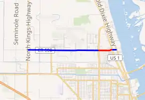 State Road 608 (SR 608) is a 0.57-mile-long (0.92 km) east–west street serving the area north of Fort Pierce in St. Lucie County, Florida. Locally known as St. Lucie Boulevard, the road extends westward and eastward as County Road 608 (CR 608).