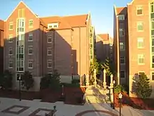 Sherrill W. Ragans Hall is in the West Campus area of the main FSU campus property.[2] It may house up to 555 men and women.[3] Each apartment at Ragans has room for three to four students, which each student having his or her own bedroom. Each apartment has two bathrooms and a cooking unit. Ragans students are not required to purchase meal membership plans. Undergraduate students above the first year (freshman) level and returning undergraduate residence hall students may live in Ragans. However, freshman students were allowed to live in Ragans during the 2016-2017 calendar year to make up for the 562 beds lost due to the pending closure of Smith before the completion of the Phase II University Housing Replacement Project.[4] Most Ragans residents are undergraduates.[3] In addition, single graduate students are eligible to live in Ragans.[5] A limited number of rooms are reserved for graduate students.[3]