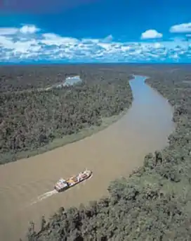 ![]() NASA Blue Marble satellite image of the Fly River | |