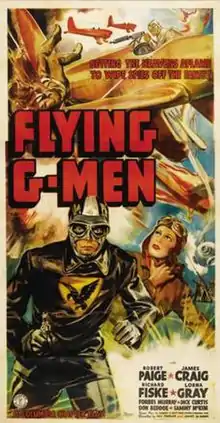 Flying G-Men is a 15-episode 1939 adventure film Film serial, directed by James W. Horne and Ray Taylor. The serial was the sixth of the 57 serials released by Columbia.[1]Four "Flying G-Men" battle with enemy saboteurs intent on destroying American military defences.[2]