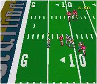 The actual gameplay takes place in a playoffs system of a fictional American football league.[5] Gameplay involves the usual football fare of choosing a play and attempting to execute it.[5] On offense, when throwing the football, a meter appears which measures the strength of the passer's throw.[5] On defense, the player controls a defensive player and tries to tackle the opposing ball carrier or attempt to break up a pass play.[5] There is an option to either play with or without background music.[5]