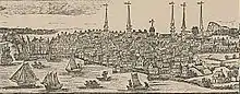 On July 5, 1779, 2,600 loyalists and British regulars under General William Tryon, governor of New York, landed in New Haven Harbor and raided the 3,500-person town. A militia of Yale students had been preparing for battle, and former Yale president and Yale Divinity School professor Naphtali Daggett rode out to confront the Redcoats. Yale president Ezra Stiles recounted in his diary that while he moved furniture in anticipation of battle, he still couldn't quite believe the revolution had begun.[14] New Haven was not torched as the invaders did with Danbury in 1777, or Fairfield and Norwalk a week after the New Haven raid, so many of the town's colonial features were preserved.