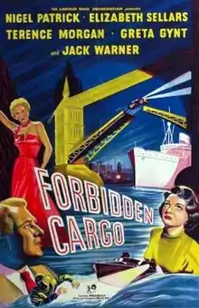 Forbidden Cargo is a 1954 British crime film, directed by Harold French[3] and starring Nigel Patrick, Elizabeth Sellars and Jack Warner.[3]
