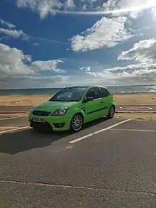 In November 2007 Ford announced the special edition 'Zetec Blue', introduced as a 'swan song' for the UK Mk5.[26] The Zetec Blue was available as a 3 or 5-door, with a choice of the 1.25 and 1.4 petrol, and 1.4TDCi diesel engines. Prices started at £9,995; in between the existing Style Climate and Zetec Climate models. The seat trim was a unique blue derivative of the 'Kyoto' type featured in the Style Climate, and whilst the Zetec Blue didn't feature a chrome grille; the model was otherwise specified as the Zetec Climate model, adding additionally; 16" 7-spoke alloy wheels, Sony CD audio system with remote controls and premium speakers, and co-ordinated blue bezel, air vent and gaiter surrounds.[27] To boost final sales before the introduction of the Mk6, the specification of the Zetec Blue was increased in the summer of 2008, with the inclusion of Bluetooth and Voice Control, and the Technology Pack (automatic headlights, rain-sensing wipers, power-fold door mirrors) as standard, which was promoted until September 30, 2008.[28]