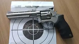 Taurus was originally known for manufacturing revolvers similar in design to those offered by Smith & Wesson.[7] The company moved away from this realm by offering larger framed models such as the Raging Bull (.454 Casull) and Raging Hornet (.22 Hornet) revolvers as well as the Judge 5-shot revolvers (.410 bore and .45 Colt).[8]