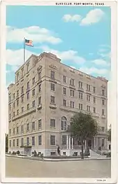 The Fort Worth Elks Lodge 124, also known as Benevolent and Protective Order of Elks is an organization founded in 1901, and it is also the name of its five-story building with elements of Georgian Revival architecture and of Spanish Renaissance Revival architecture that was built during 1927–28. It was purchased by the YWCA of Fort Worth and Tarrant County in 1954.[2]