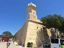 - St. Michael's Counterguard – a three-tiered counterguard built in 1640 near St. Michael's Bastion. Its lower tier contains an echaugette at its salient angle, and a small chapel dedicated to St. Roche.[44] The chapel was destroyed in World War II, but was rebuilt in 2014.[27]