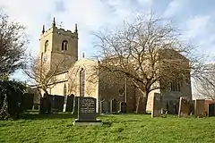 Foston contains five listed buildings. The Grade I parish Church of St Peter on Church Street dates to the late 12th century, with later additions and changes, including, in 1859, those by Charles Kirk, son to the senior Charles Kirk.[8] Foston's Grade II listed buildings on Main Street are: the brick built Manor Farmhouse, dating to the late 18th century; the late 18th-century 'Renard', a red brick house converted from two cottages; and The Old Hall, a stone and red brick house dating at its earliest to 1647. On Newark Hill is The Old Post Office, a Grade II brick house dating to the early 19th century.[9][10][11][12]