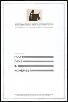 Four Days in November is a 1964 American documentary film directed by Mel Stuart about the assassination of John F. Kennedy. It was nominated for an Academy Award for Best Documentary Feature.[2][3][4]