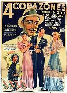 Cuatro corazones is a 1939 Argentine musical drama film, and the debut feature film of director Carlos Schlieper. It stars Enrique Santos Discépolo, Gloria Guzmán and Irma Córdoba.[1]