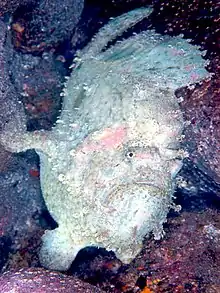 Fowlerichthys scriptissimus[1] is a species of fish in the family Antennariidae. It is native to the Indo-West Pacific, where it occurs in rocky areas of coastal coral reefs at a depth range of 73 to 185 m (240 to 620 ft). It is an oviparous species that reaches and reportedly may exceed 28 cm (11 inches) SL.[2] On March 28, 2012, an individual measuring 29.1 cm (11.5 inches) SL was collected off the coast of Jejudo, marking the first record of this species from Korean waters.[3]