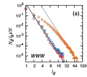 Fig.(5) shows the invariance of the degree distribution P(k) under the renormalization performed as a function of the box size on the World Wide Web. The networks are also invariant under multiple renormalizations applied for a fixed box size lB. This invariance suggests that the networks are self-similar on multiple length scales.