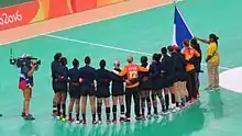 France women's national handball team at the Copper Box Arena before a game against Sweden at the 2012 Summer Olympics.