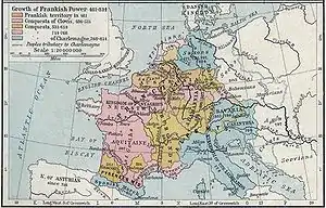 ![]() Diachronic map of the Frankish kingdom at its greatest extent | |||||||||||||||||