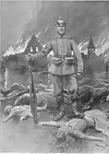 Melgar's works which stirred most controversy are his pro-Entente pamphlets from 1916-1917, mostly En desgravio, La mentira anónima and La gran víctima.[170] Written with partisan zeal and propagating all sorts of calumnies against the Central Powers, they turned many Carlists against Melgar,[171] though it is not clear how many Spaniards they won for the cause of the Allies. They were certainly noted abroad; the British New Statesman acknowledged them as "amazing pamphlets".[172] Today they are considered "classic example of the surrender of objectivity" and virulent propaganda.[173]