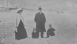 Family life of Francisco Melgar remains rather obscure; neither he in his memoirs nor any of the scholars offers any meaningful insight into his personal matters. Next to nothing is known about his wife, Jeanne Trampus,[22] except that according to Melgar[23] she was mentally ill and developed maniac behavior;[24] she deceased before her husband. Born in Trieste,[25] they married in Paris in 1906; their daughter, Carmen Melgar Trampus (1907-1990), became a nun.[26] Their son, Francisco Carlos Melgar Trampus,[27] as a youngster serving as secretary to the Carlist claimant Don Jaime,[28] engaged in Madrid Carlist structures of the 1920s;[29] in the 1930s he was the Paris correspondent of Estampa and As,[30] in the 1940s active in the Francoist press; in the 1950s he acknowledged Don Juan as legitimate Carlist heir and entered his Consejo Privado.[31] Author of a few books on Carlism,[32] in the 1960s he wrote as a columnist to ABC.[33] His son, Jaime Melgar Botassi, worked as translator.[34] Currently the condado rests with Francisco's great-grandson, Francisco Melgar y Gómez de Olea Botassi y Naveda.[35]