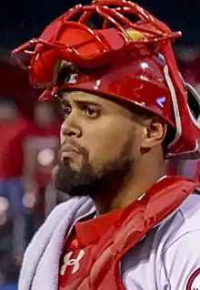 On December 13, 2017, Pena signed a minor league contract with the St. Louis Cardinals.[10] He made the active roster as the backup catcher, from a NRI in Spring Training, on March 23, 2018, and will make-up a four-man bench.[11] He elected free agency on November 3, 2018.[12] On December 1, 2018, it was incorrectly reported that the Cardinals resigned Peña to a minor league contract with an invitation to spring training.[13] This was due to an error on the date of a story reporting the previous year contract.