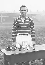 Frank Dyson (14 March 1931 – 31 October 1979), also known by the nickname of "Spanky", was an English professional rugby league footballer who played in the 1950s and 1960s, and coached in the 1960s. He played at representative level for Great Britain and Yorkshire, and at club level for Huddersfield and Oldham (Heritage № 660), as a prolific left-footed goal-kicking fullback, i.e. number 1, and he coached at club level for Oldham.[2][3]