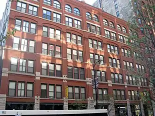 The Franklin Building is a 14-story brick building on Printer's Row in Chicago, Illinois, located at 720 South Dearborn Street. It is one of the historic buildings in the City of Chicago Printing House Row landmark district.[1] The building was designed by George C. Nimmons for the Franklin Printing Company and built in 1916 following on the company's previous building at 523 Dearborn, which was constructed in 1886. The current building is an example of Chicago School architecture. Oskar Gross, a painter from Vienna, Austria, did a mural over the main entrance and painted tiles for the building[2] depicting an artist, engraver, typesetter, bookbinder, and other artisans involved in the printing process.[3]