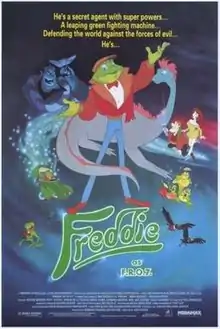 Freddie as F.R.O.7 (also known as Freddie the Frog) is a 1992 British animated musical action fantasy comedy film written and directed by Jon Acevski and starring the voice of Ben Kingsley.[2] Inspired by bedtime stories Acevski told to his son about his favourite toy frog working as a secret agent, it is a parody of James Bond.