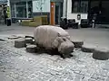 - Sejr 1960, p. 60, line 10: "Efter den lange krigsperiode var næsten to tredjedele af byen >>spoleret<< og ikke mindst var det gået ud over Brobjerggaden."