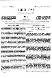 In a desperate attempt to widen the range of its appeal the publishing house launched another paper, Obshcheye Veche (Common Council), written in simple language and aiming to cater for the semi-literate masses of Russians.