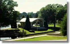A county bond issue resulted in a $900,000 indoor shelter building which was opened in September 2005. This shelter has a commanding view of the lake and includes a large public room, a fireplace, large screen TV, offices, a kitchen, rest rooms, and a concrete patio. It is available for rental for weddings, receptions, small sporting events, and community meetings.[8]