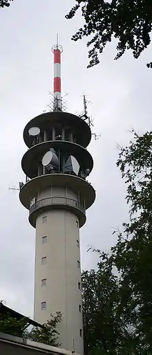 Fremersberg Tower (German: Fremersbergturm) is an 83-metre-tall (272 ft) telecommunication tower built of reinforced concrete with an observation deck 30 metres above ground. There is a small restaurant located next to the tower. Fremersberg Tower, which was built in 1961 is situated on 525-metre-high (1,722 ft) Fremersberg near Baden-Baden at 8°12'8" E and 48°45'10" N.
