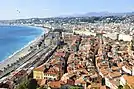 Officially, the French Riviera is home to 163 nationalities with 83,962 foreign residents,[6] although estimates of the number of non-French nationals living in the area are often much higher.[7] Its largest city is Nice, which has a population of 340,017 as of 2017.[8] The city is the centre of a métropoleNice-Côte d'Azur—bringing together 49 communes and more than 540,000 inhabitants and 943,000 in the urban area. Nice is home to Nice Côte d'Azur Airport, France's third-busiest airport (after Charles de Gaulle Airport and Orly Airport), which is on an area of partially reclaimed coastal land at the western end of the Promenade des Anglais. A second airport at Mandelieu was once the region's commercial airport,[9] but is now mainly used by private and business aircraft.[10]