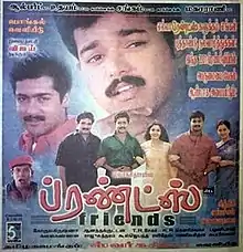 Friends is a 2001 Indian Tamil-language drama film, directed by Siddique in his Tamil debut and produced by Appachan. It is the Tamil remake of Siddique's own 1999 Malayalam film of the same name. The film stars Vijay, Suriya and Ramesh Khanna, while Devayani, Vijayalakshmi, Abhinayashree, Vadivelu, Charle, Radha Ravi and Madhan Bob played the supporting roles.[1] The music was composed by Ilaiyaraaja, while Anandakuttan handled cinematography. It was released on 12 January 2001 and completed a 190-day theatrical run at the box office.[2] This film also marks the second collaboration of Vijay and Suriya after Nerrukku Ner (1997).