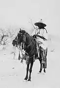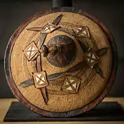In general, a Fulani hat is a basketry hat made of plant fibers. It is covered in leather both at the brim and top and sometimes with decorative leather elements in the middle. At the very top of the hat there is a knob which is covered in leather. At the base of the hat there is often a chinstrap with a tassel at the end.[1]