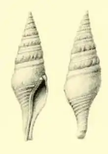 | Original drawing with two views of a shell of Fusiturris amianta | |